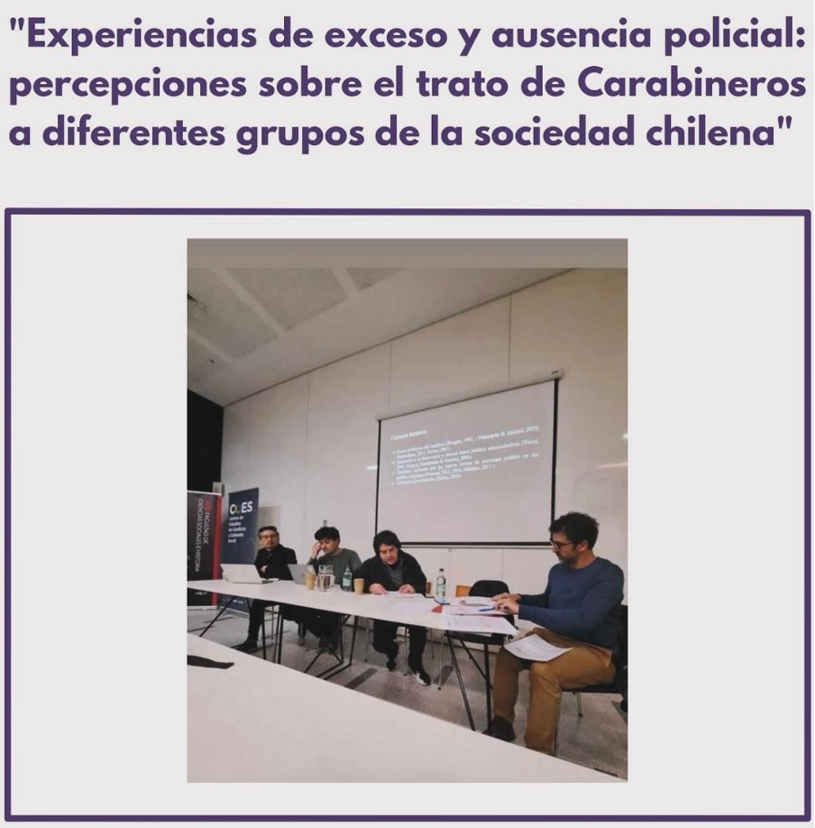 En este contexto, Luciano presentó su investigación: “Experiencias de exceso y ausencia policial: percepciones sobre el trato de Carabineros a diferentes grupos de la sociedad chilena”.